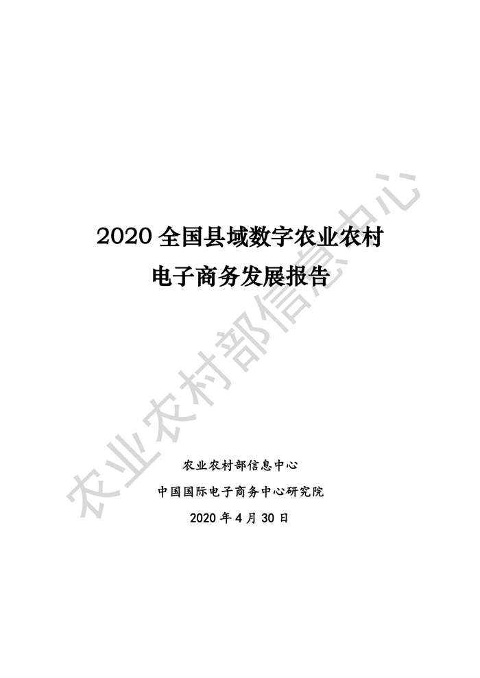 4月30日,農(nóng)業(yè)農(nóng)村部信息中心聯(lián)合中國國際電子商務(wù)中心研究院在京舉辦《2020全國縣域數(shù)字農(nóng)業(yè)農(nóng)村電子商務(wù)發(fā)展報告》線上發(fā)布會。