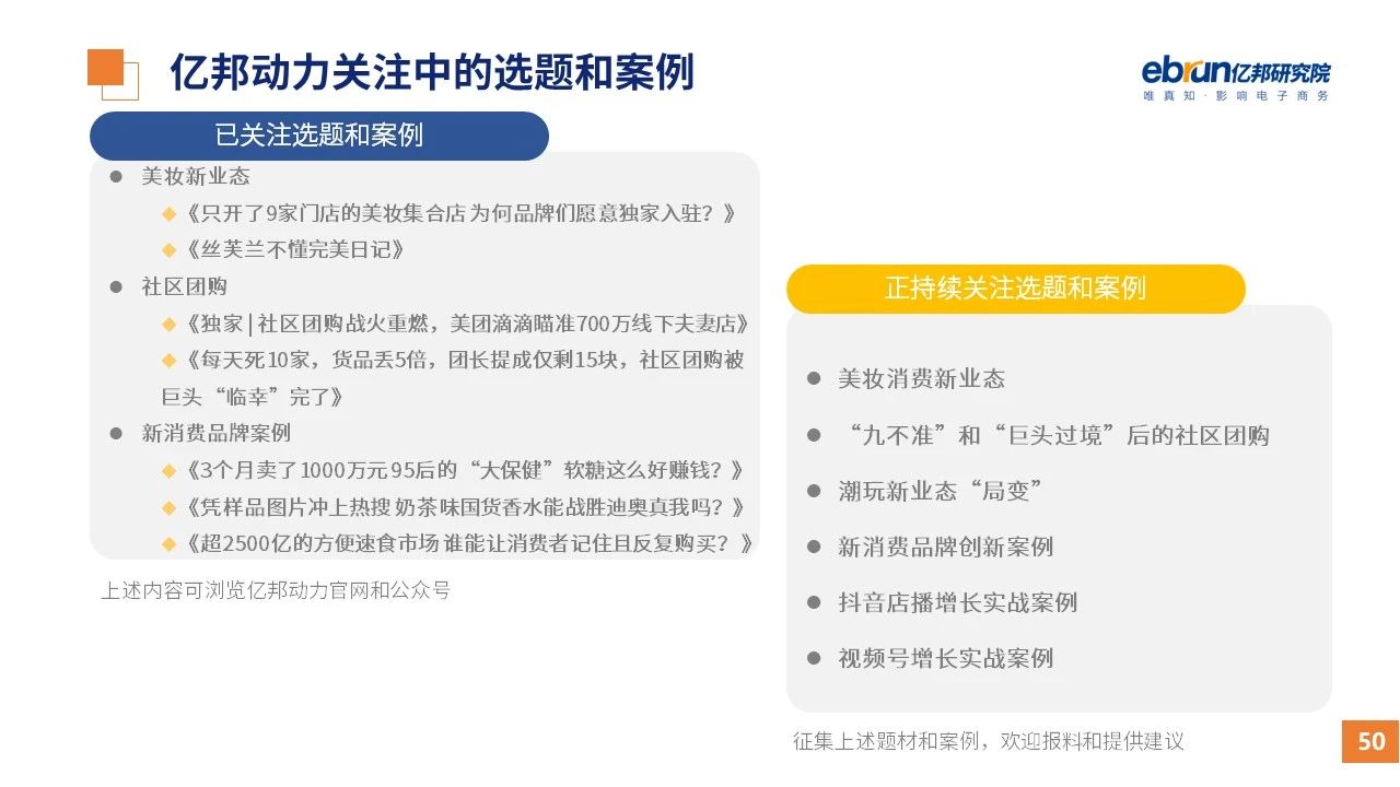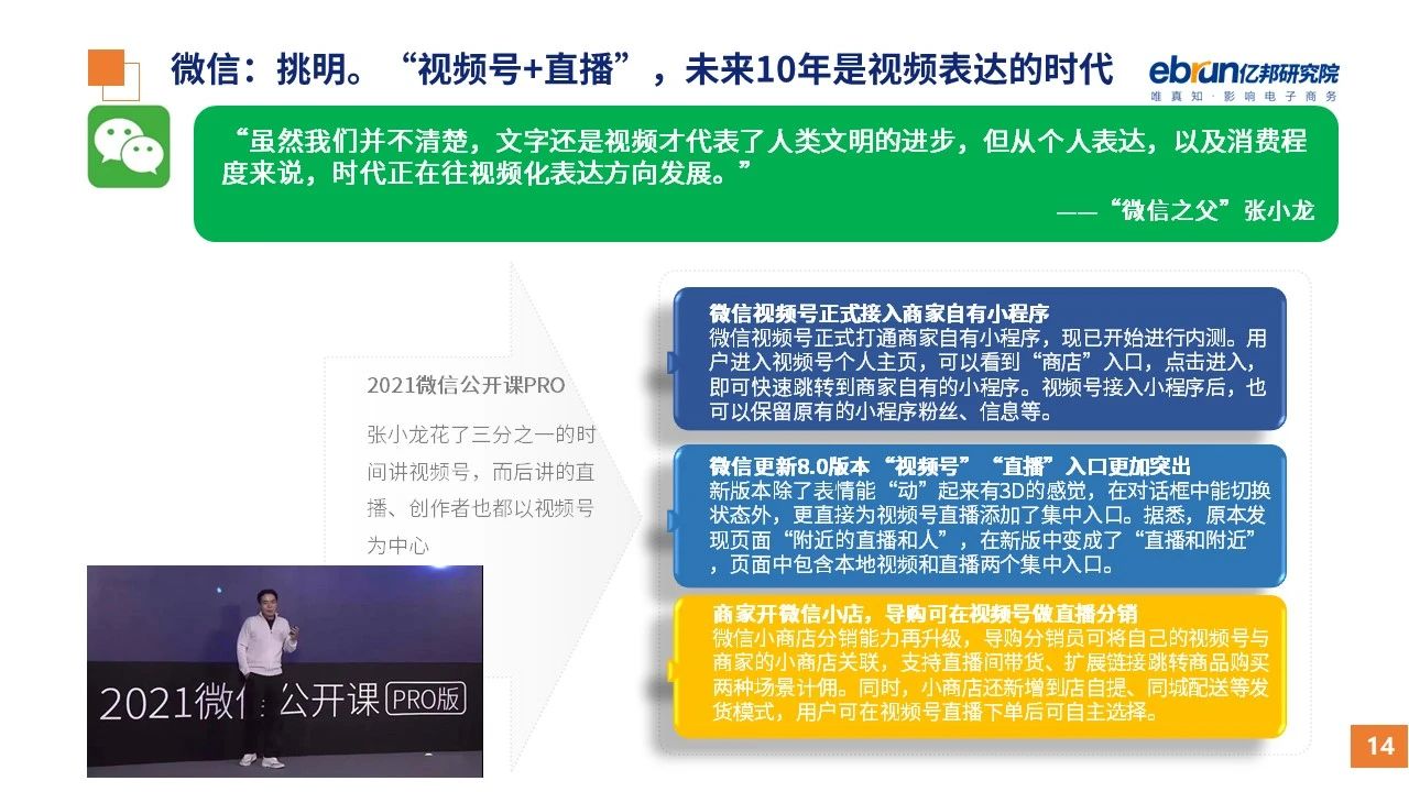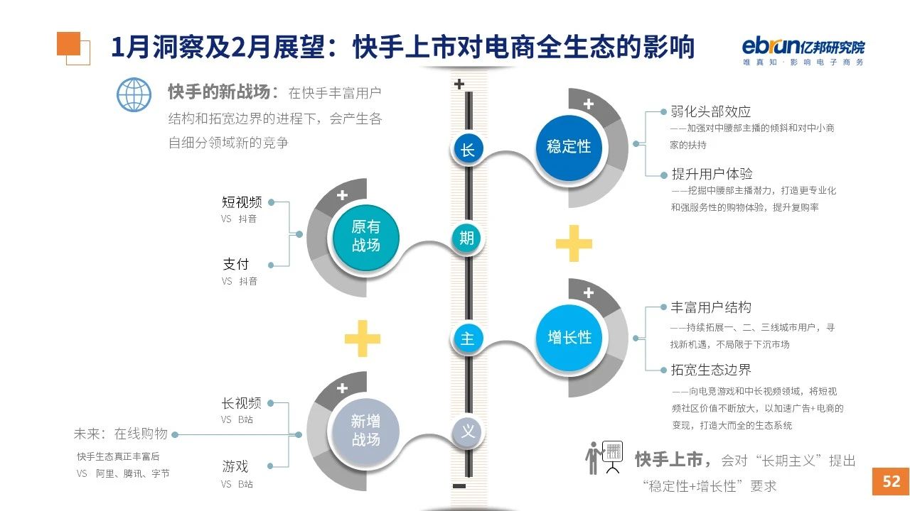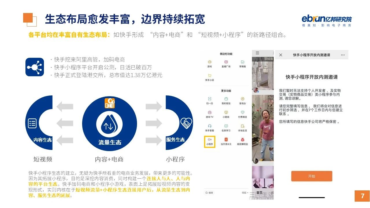 縱觀2021年1月,各平臺豐富自有生態(tài)布局,如淘寶直播(點淘)加入短視頻模式、騰訊重押視頻號、快手加碼電商和小程序、抖音推出支付等;視頻內容成為各平臺未來重點發(fā)力方向;“九不得”新規(guī)發(fā)布后社區(qū)團購仍熱情不減;國家和市場對互聯(lián)網巨頭和電商相關消費加大監(jiān)管力度……你信和不信,你知道和不知道的,都在這份億邦動力研究院正式發(fā)布的