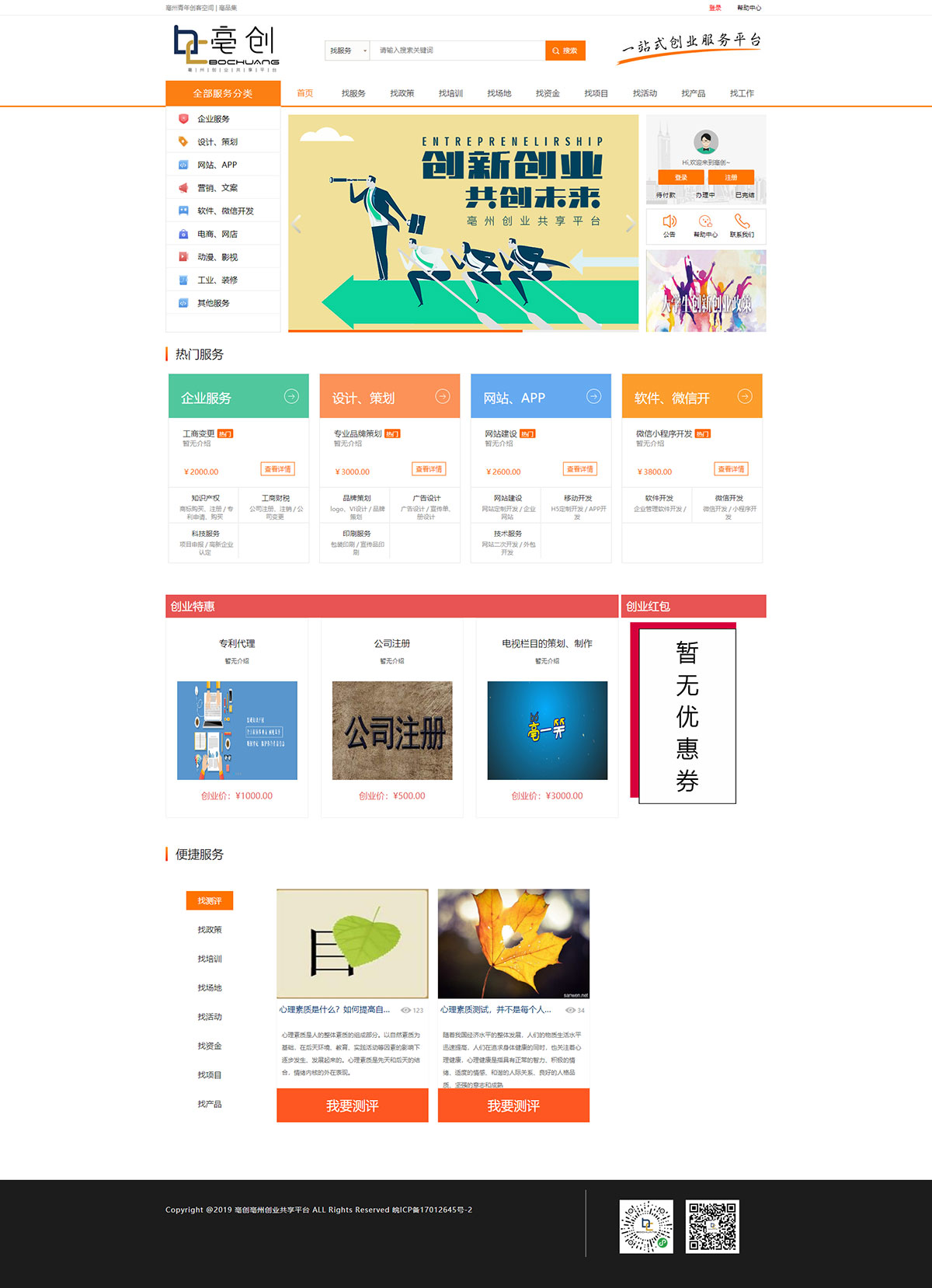 針對創(chuàng)客所需商業(yè)服務(wù)、創(chuàng)客項(xiàng)目資金(補(bǔ)助)申請、企業(yè)在線服務(wù)的綜合性創(chuàng)業(yè)、孵化、共享平臺。集合各類創(chuàng)業(yè)服務(wù)商的資源,將行政、融資、營銷、人才、商業(yè)服務(wù)等基礎(chǔ)領(lǐng)域在內(nèi)的多項(xiàng)能夠扶助創(chuàng)業(yè)項(xiàng)目快速成長的服務(wù)打包到一起,為創(chuàng)業(yè)者提供一站式、高品質(zhì)的創(chuàng)業(yè)服務(wù)。
